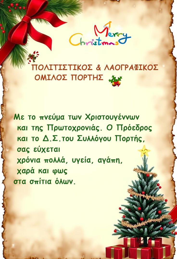 το Δ.Σ.του Συλλόγου Πορτής, σας εύχεται